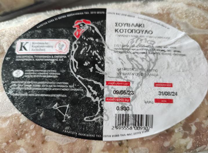 Ο Ε.Φ.Ε.Τ. και ειδικότερα η Περιφερειακή Διεύθυνση Κεντρικής Μακεδονίας, κατά τη διενέργεια ελέγχων στο πλαίσιο του Προγράμματος «Επίσημος Έλεγχος Μικροβιολογικών Κριτηρίων Ασφάλειας Τροφίμων» έτους 2023, προέβη σε δειγματοληψία κατεψυγμένων παρασκευασμάτων κρέατος με τα στοιχεία: 1) ΜΠΙΦΤΕΚΙ ΚΟΤΟΠΟΥΛΟΥ ΧΩΡΙΣ ΓΛΟΥΤΕΝΗ με ημερομηνία ανάλωσης 06/08/2024 και ημερομηνία παραγωγής / κατάψυξης 14/04/2023 και 2) ΣΟΥΒΛΑΚΙ ΚΟΤΟΠΟΥΛΟ, με ημερομηνία ανάλωσης 31/08/2024 και ημερομηνία παραγωγής / κατάψυξης 09/05/2023 που παράγονται από την εταιρεία «ΠΤΗΝΟΤΡΟΦΙΚΕΣ ΕΠΙΧΕΙΡΗΣΕΙΣ Α. ΚΑΡΑΓΙΑΝΝΑΚΗΣ Α.Ε. – Κοτόπουλα Καραγιαννάκη Χαλκιδικής».