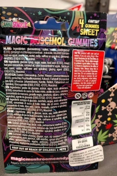 Ο ΕΦΕΤ και ειδικότερα η Περιφερειακή Διεύθυνση Αττικής, στο πλαίσιο διερεύνησης καταγγελίας καταναλωτή και διενέργειας σχετικών ελέγχων, προέβη σε δειγματοληψία και εργαστηριακή εξέταση σε ζελεδάκια, τα οποία διανέμονται από την εταιρεία ‘EC STEVIA A.E.’ που βρίσκεται στον Ταύρο, ενώ διατίθενται από καταστήματα επωνυμίας ‘SMOKE CARTEL E.E.’. Υπογραμμίζεται ότι τα εν λόγω προϊόντα κυκλοφορούν στην αγορά σε διάφορες γεύσεις και μέσω διαδικτύου, καθώς και από άλλα σημεία λιανικής πώλησης. Το προϊόν εξετάστηκε από το Γ’ Τμήμα Ναρκωτικών της Β’ Χημικής Υπηρεσίας Αθηνών του Γενικού Χημείου του Κράτους της Α.Α.Δ.Ε., όπου διαπιστώθηκε η παρουσία της ουσίας μουσκιμόλη, η οποία προέρχεται από το μανιτάρι Amanita muscaria και παρουσιάζει ψυχοδραστικές ιδιότητες.