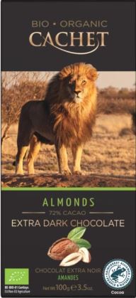 Α) «ΣΟΚΟΛΑΤΑ ΜΑΥΡΗ ΑΜΥΓΔΑΛΟ 72% ΚΑΚΑΟ» με εμπορική ονομασία «CACHET» σε συσκευασία των 100g, με αριθμό παρτίδας 22343 και ημερομηνία ελάχιστης διατηρησιμότητας 09/03/2024 με ενδεικτική φωτογραφία: