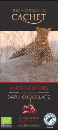 Β) «ΣΟΚΟΛΑΤΑ ΜΑΥΡΗ ΚΕΡΑΣΙ ΑΜΥΓΔΑΛΟ 57% ΚΑΚΑΟ» με εμπορική ονομασία «CACHET» σε συσκευασία των 100g, με αριθμό παρτίδας 22302 και ημερομηνία ελάχιστης διατηρησιμότητας 29/01/2024 με ενδεικτική φωτογραφία:
