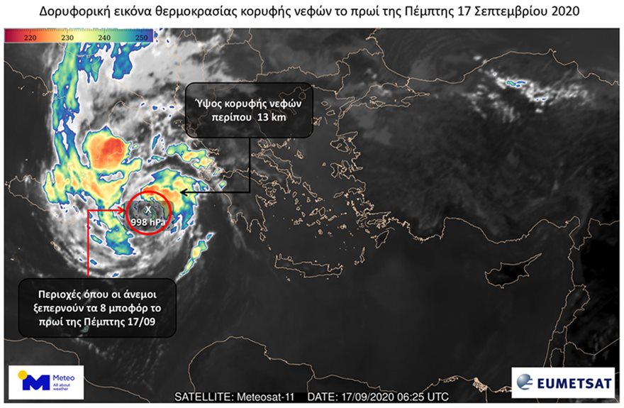 Όπως είπε ο μεσογειακός κυκλώνας «είναι σχηματισμένος με καλά διαμορφωμένο μάτι, η πίεση στο κέντρο πέφτει αναπτύσσονται καταιγίδες γύρω του και περιμένουμε να ξεκινήσουν οι ισχυροί άνεμοι και οι βροχές από το απόγευμα».