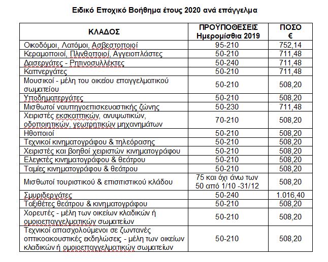 Δικαιούχοι είναι επίσης και οι συνταξιούχοι που υπέβαλαν αίτηση συνταξιοδότησης, μέχρι και τις 10/9/2020, που κατά το έτος 2019 ασκούσαν ένα από τα παραπάνω επαγγέλματα και έχουν τις προϋποθέσεις για τη λήψη του βοηθήματος έτους 2020, εφόσον το ποσό της σύνταξης, που λαμβάνουν (κύρια και επικουρική), είναι μικρότερο από το ποσό των 495,75 ευρώ.