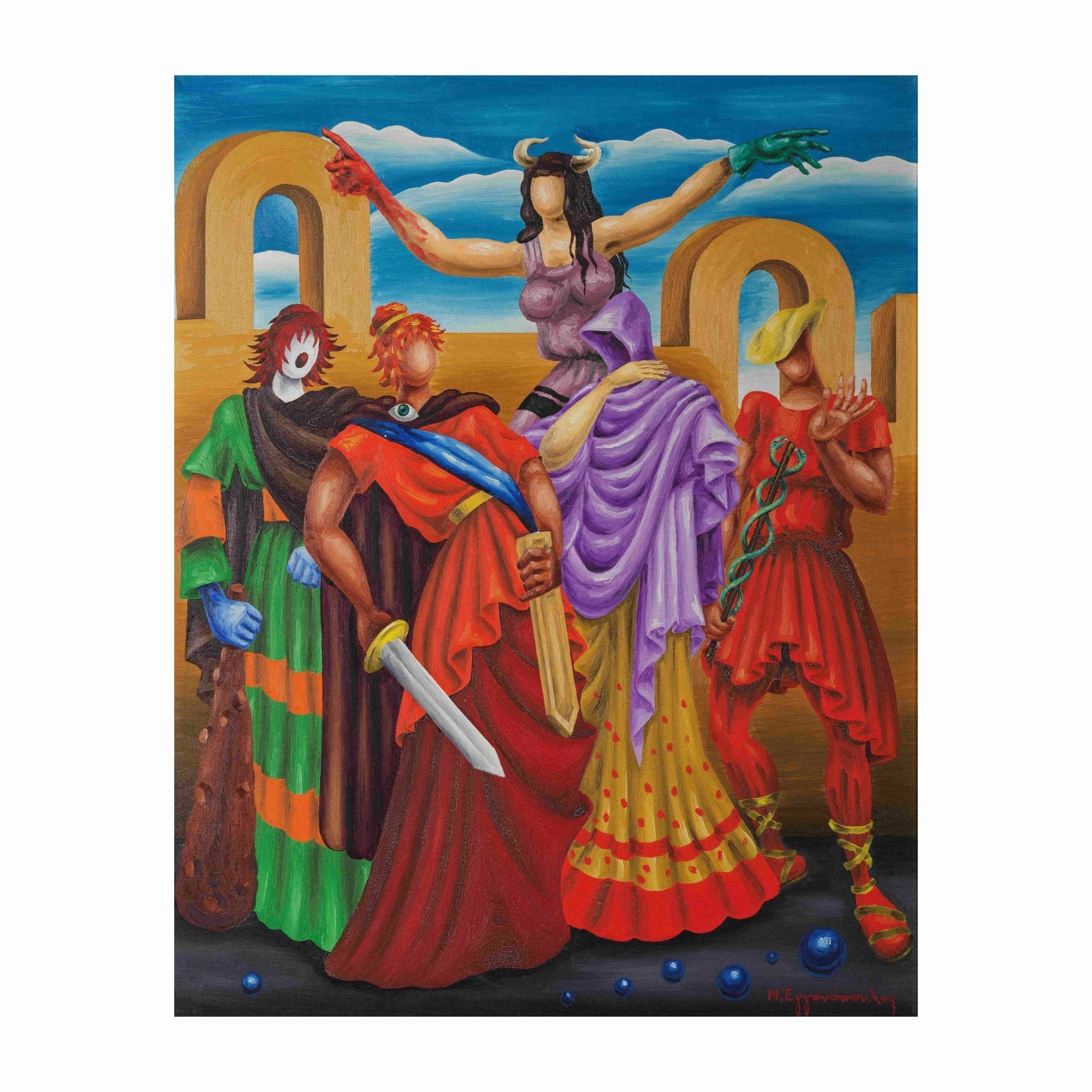 Ένα λαμπρό έργο που θα τραβήξει το ενδιαφέρον των συλλεκτών είναι το Τραγωδία στο Ηρώδειο (€120,000-180,000) του Νίκου Εγγονόπουλου (1907-1985), ζωγραφισμένο το 1955. Το έργο αποτελεί ένα θαυμάσιο δείγμα χρωματικής δεξιοτεχνίας του μεγάλου Έλληνα σουρεαλιστή, συνδυάζοντας με πρωτοποριακό τρόπο την παράδοση της βυζαντινής τέχνης και τα διδάγματα του Ελ Γκρέκου με τις κατακτήσεις της δυτικοευρωπαϊκής avant-garde. Στην εντυπωσιακή σύνθεση απεικονίζονται πέντε αινιγματικές φιγούρες, πιθανώς πρωταγωνιστές ενός φανταστικού θεατρικού έργου με θέμα κάποιο επικό γεγονός.