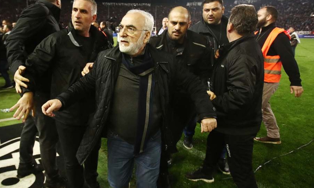 2. Στο 89ο λεπτό της αναμέτρησης, κατόπιν επίτευξης τέρματος της γηπεδούχου ομάδας και εξ αφορμής της γενικότερης αμφισβήτησης και της επικρατούσας την δεδομένη χρονική στιγμή έντασης, ο πρόεδρος της Π.Α.Ε Π.Α.Ο.Κ, ΣΑΒΒΙΔΗΣ Ιωάννης, συνοδεία της προσωπικής του ασφάλειας, εισήλθε εντός του αγωνιστικού χώρου και κινήθηκε προς το κέντρο αυτού. Κατόπιν προτροπής της προσωπικής του ασφάλειας και με την παρέμβαση Αστυνομικών Δυνάμεων απομακρύνθηκε από το κέντρο του γηπέδου και αποχωρώντας κινήθηκε προς τον πάγκο της Α.Ε.Κ, όταν και πάλι με την προτροπή των συνοδών της ασφαλείας και την παρέμβαση της Αστυνομίας, κινήθηκε με κατεύθυνση την φυσούνα των αποδυτηρίων. Λίγο πριν την αποχώρησή του, κινήθηκε εκ νέου με πρόθεση προσέγγισης των εκπροσώπων της φιλοξενούμενης ομάδας. Ακολούθως, ο διαιτητής και οι αποστολές των δυο ομάδων αποχώρησαν στα αποδυτήρια τους και περί ώρα 23.30, ο διαιτητής αποφάσισε την οριστική διακοπή του αγώνα.
