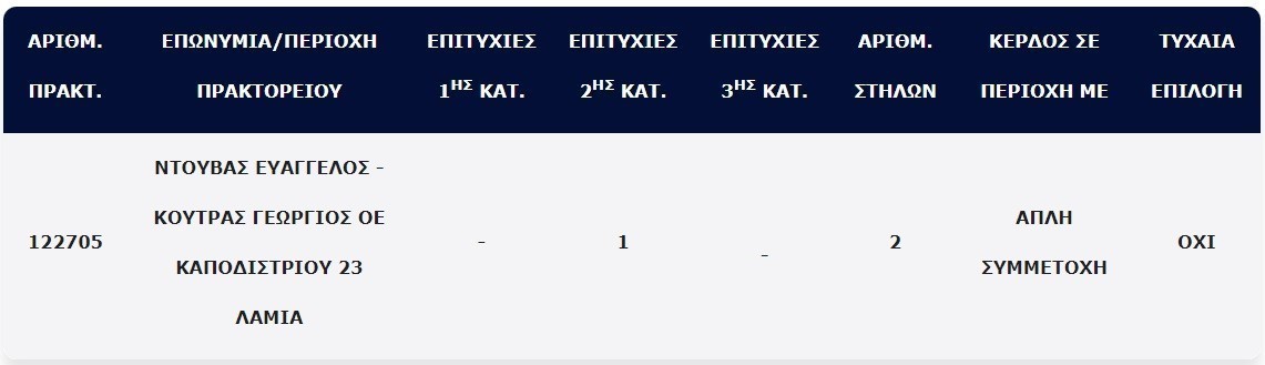 Όσο για το τυχερό δελτίο, περιείχε 2 στήλες και κατατέθηκε σε κατάστημα ΟΠΑΠ στη Λαμία.