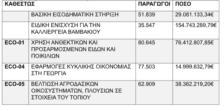 • Ειδική ενίσχυση για το βαμβάκι – 35.547 ΠΑΡΑΓΩΓΟΙ – 154.743.289 ΕΥΡΩ