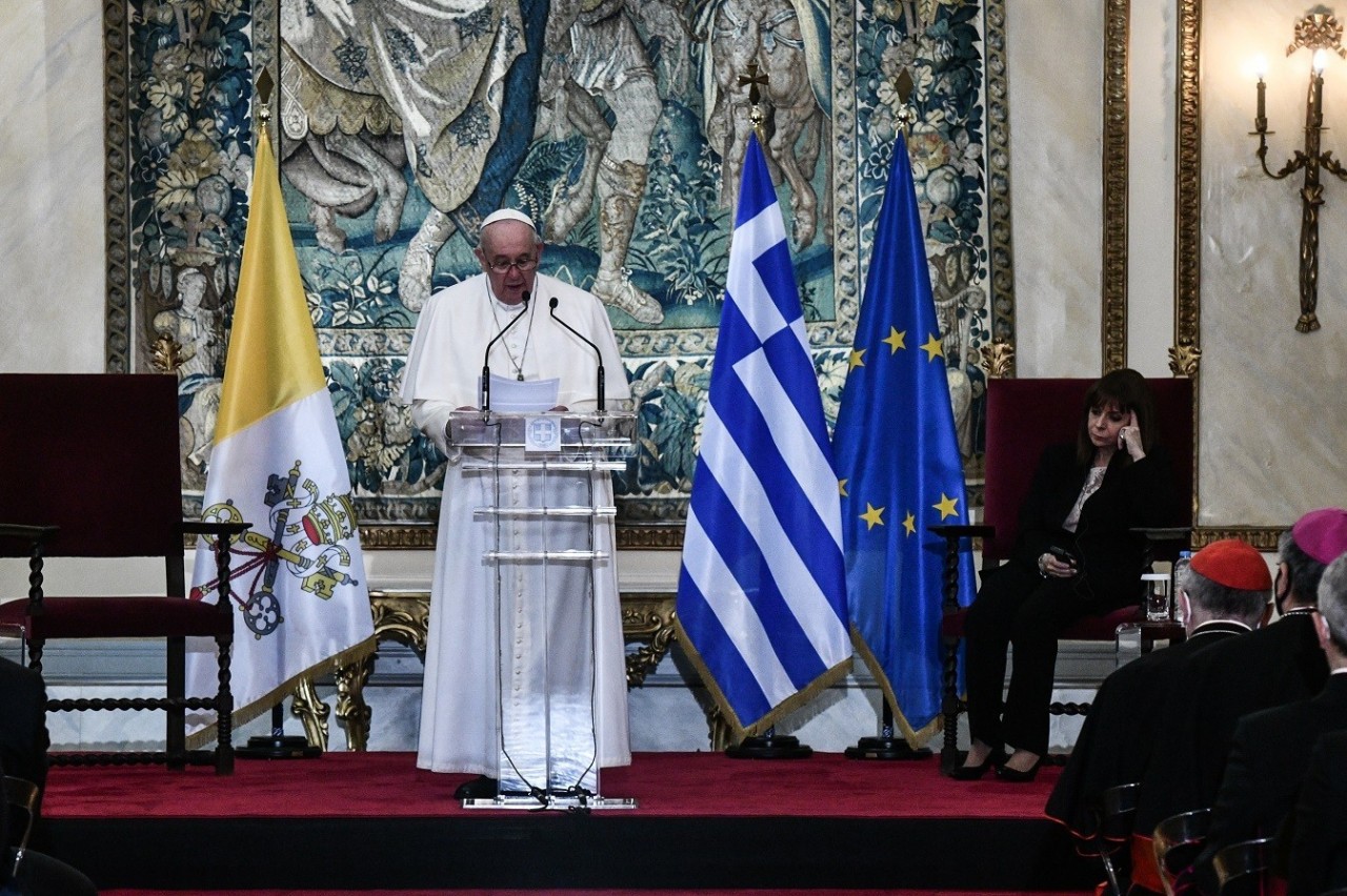 Ο Πάπας Φραγκίσκος σε μία συγκινητική ομιλία ανέφερε: «Χωρίς την Αθήνα και χωρίς την Ελλάδα, η Ευρώπη και ο κόσμος δεν θα ήταν αυτό που είναι σήμερα». Οπως είπε «εδώ σύμφωνα με τη δήλωση του Σωκράτη άρχιζε κάποιος να νιώθει πολίτης. Εδώ ο ανθρωπος αντιλήφθηκε ότι ήταν ένα πολιτικό ον. Εδώ γεννήθηκε η δημοκρατία. Σήμερα, όχι μόνο στη Γηραιά Ήπειρο, υπάρχει μια υποχώρηση της Δημοκρατίας. Η συμμετοχή όλων ειναι θεμελιώδους σημασίας όχι μόνο για την επίτευξη στόχων αλλά γιατί αποκαλύπτει το ποιοι είμαστε». Και συνέχισε: «Ας βοηθήσουμε ο ένας τον άλλον να περάσουμε από τη μεροληψία στη συμμετοχή. Αυτό είναι το κίνητρο που θα πρέπει να μας ωθήσει σε διαφορά μέτωπα. Σκέφτομαι την πανδημία και πάνω από όλα τη φτώχεια. Όπως διδάσκει το μεγάλο ομηρικό έπος, το μεγάλο ταξίδι συχνά είναι η μόνη οδός». Μιλώντας για την Ελλάδα σημείωσε: «Τούτη η χώρα που χαρακτηρίζεται από τη φιλοξενία έχει δει στα νησιά της αδέλφια περισσότερους από τους κατοίκους να καταφθανουν».
