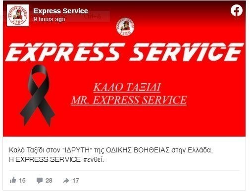 Την είδηση του θανάτου του ανακοίνωσαν με ανάρτησή τους στο Facebook οι εργαζόμενοι της επιχείρησης, ευχόμενοι «καλό ταξίδι στον ιδρυτή της οδικής βοήθειας στην Ελλάδα».