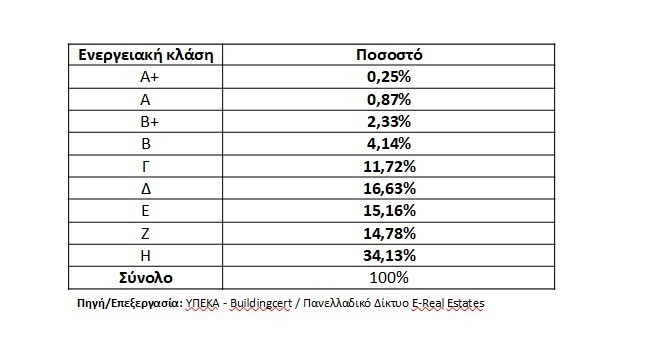 • Μόλις μία στις δέκα κατοικίες εντάσσεται στις κατηγορίες Α+,Α,Β+ και Β, δηλαδή πλησιάζει τα σύγχρονα πρότυπα ενεργειακής απόδοσης.