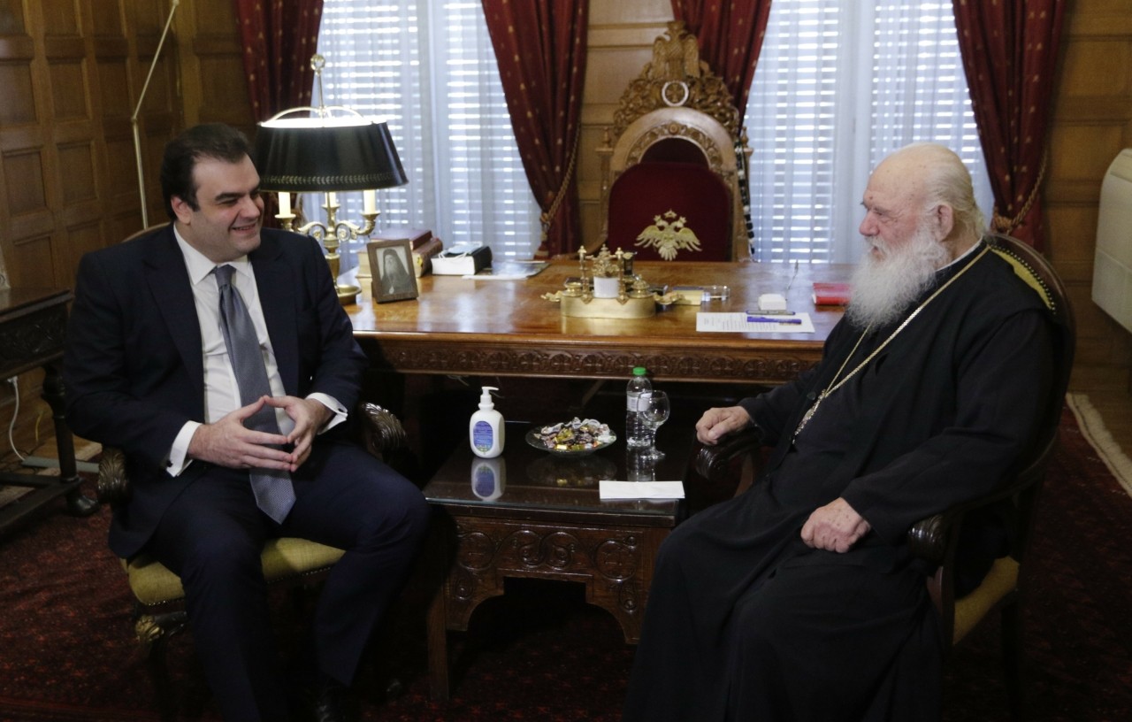 Τον υπουργό Ψηφιακής Διακυβέρνησης, Κυριάκο Πιερρακάκη, δέχθηκε το πρωί ο Αρχιεπίσκοπος Ιερώνυμος στην Αρχιεπισκοπή Αθηνών.