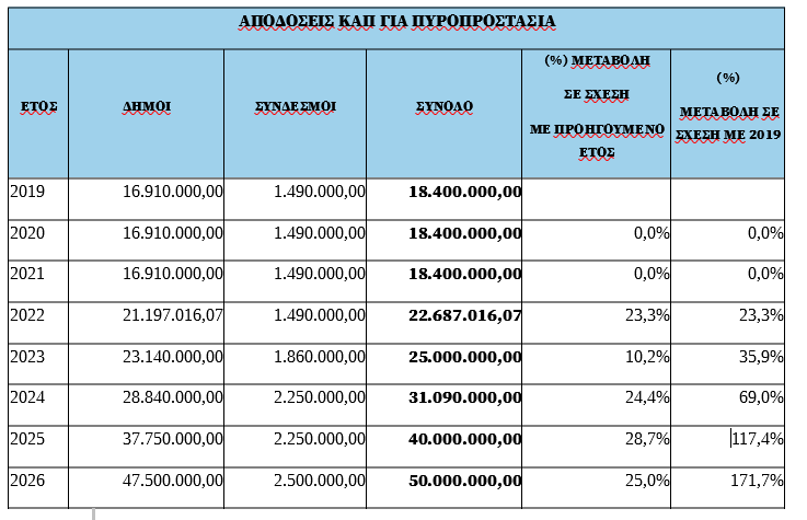 Χρηματοδότηση ύψους 50 εκατ. ευρώ, αυξημένη κατά 10 εκ. ευρώ (25%) σε σχέση με το 2024, διατίθεται από το Υπουργείο Εσωτερικών με απόφαση του Υπουργού Θοδωρή Λιβάνιου προς τους Δήμους και τους Συνδέσμους τους για την υλοποίηση δράσεων πυροπροστασίας το 2026.