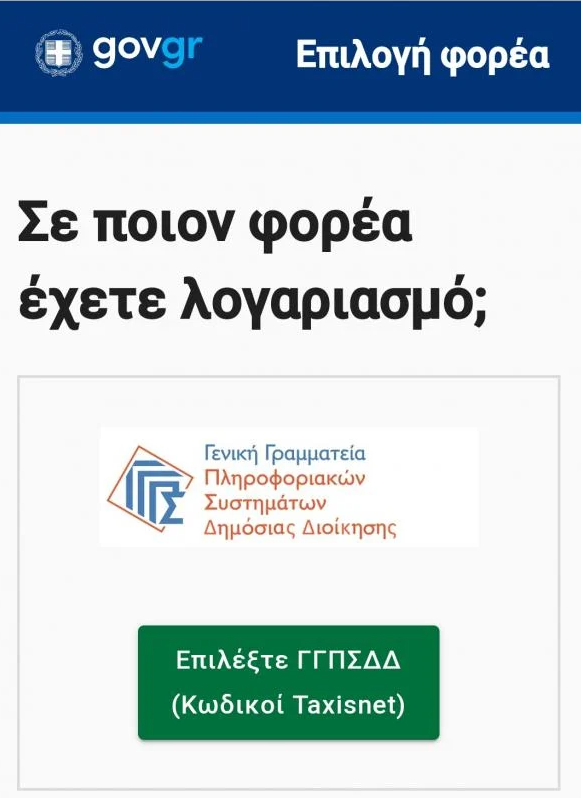 Εν συνεχεία θα ερωτηθείτε σε ποιο φορέα έχετε λογαριασμό ώστε να γίνει ο έλεγχος ταυτοπροσωπίας αυτόματα. Οι επιλογές είναι με κωδικούς taxisnet ή τράπεζας που διαθέτετε λογαριασμό.