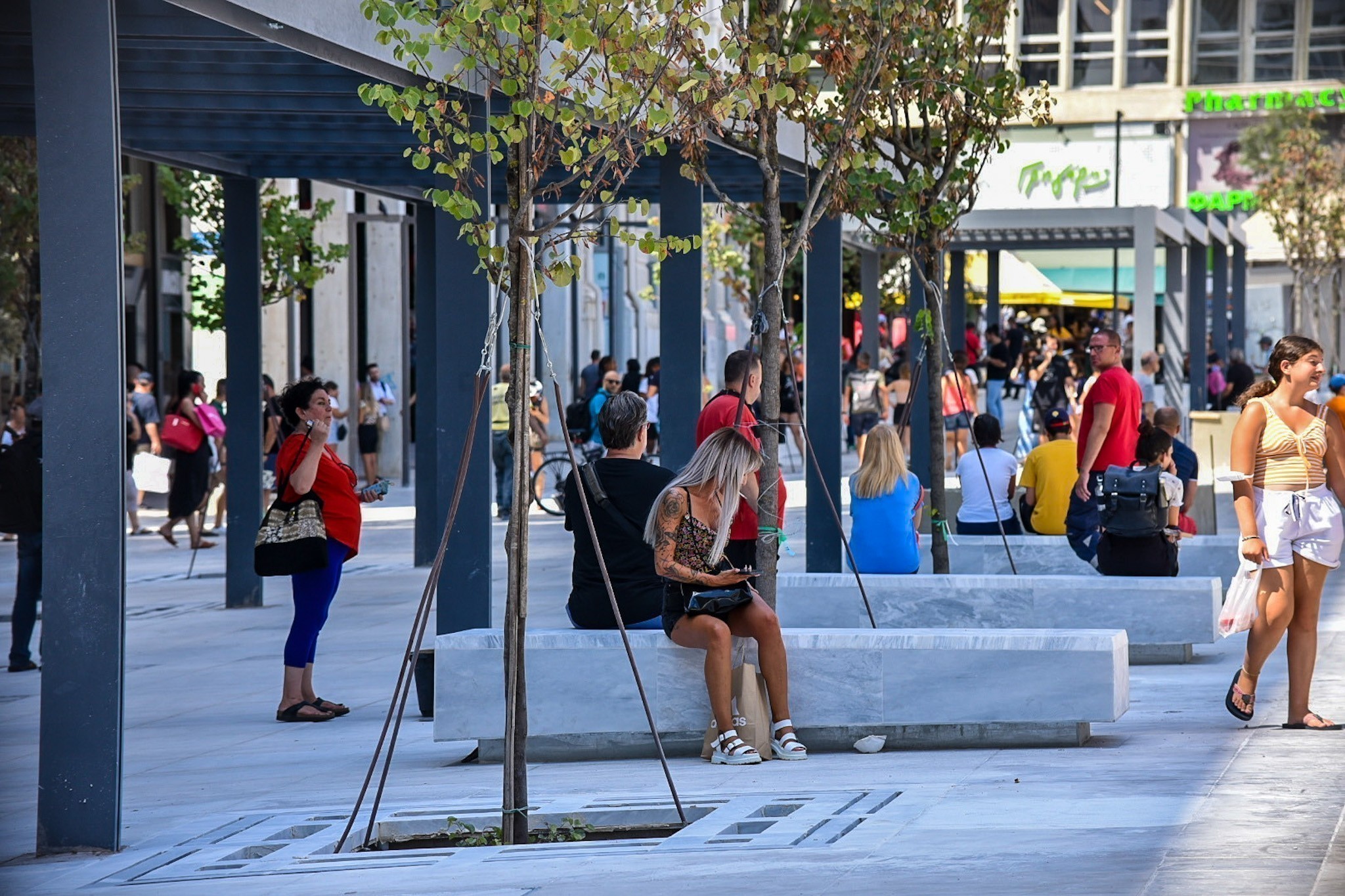 – Μεγάλα καθιστικά, κοντά στα νέα δέντρα, για άνετη στάση.