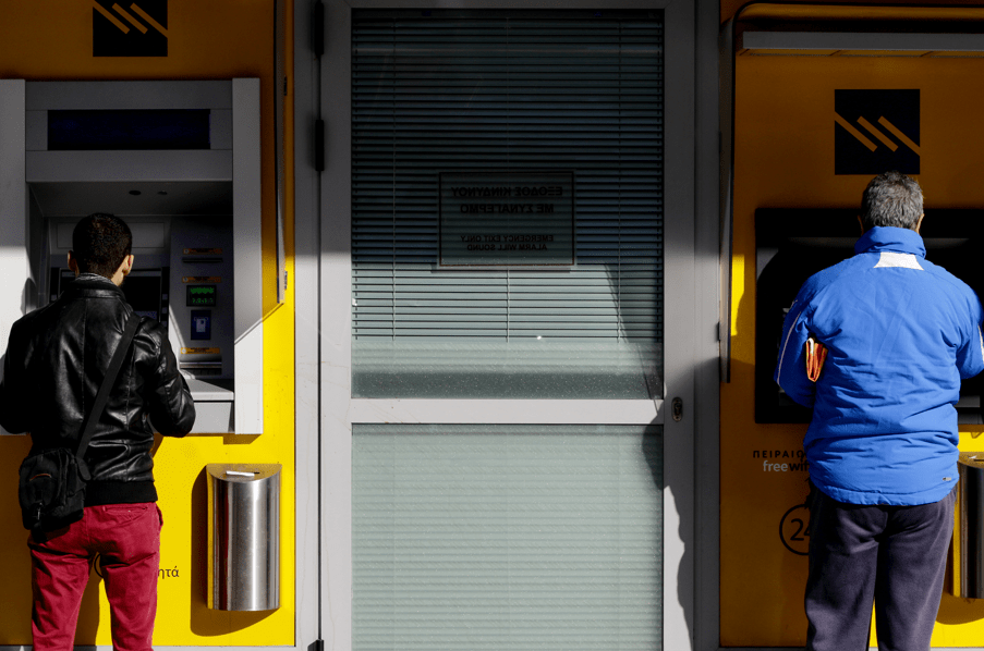 Στις τράπεζες, το κοινό εισέρχεται κατόπιν υποχρεωτικής επίδειξης κατά την είσοδο: