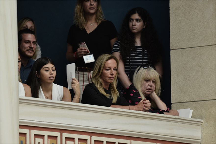 Από τα θεωρεία παρακολουθούσε η κυρία Δανάη Στρατού σύζυγος του Γιάνη Βαρουφάκη καθώς και ο γιος, η αδελφή και η πεθερά του Κυριάκου Μητσοτάκη, καθώς και η Μάρα Ζαχαρέα