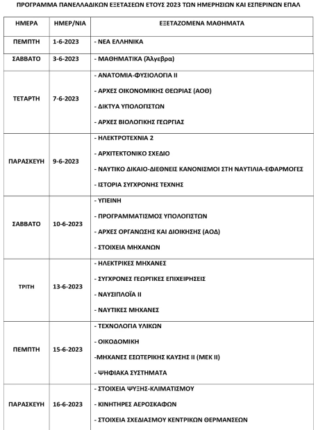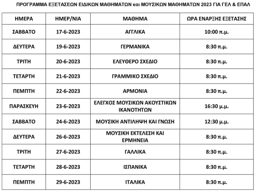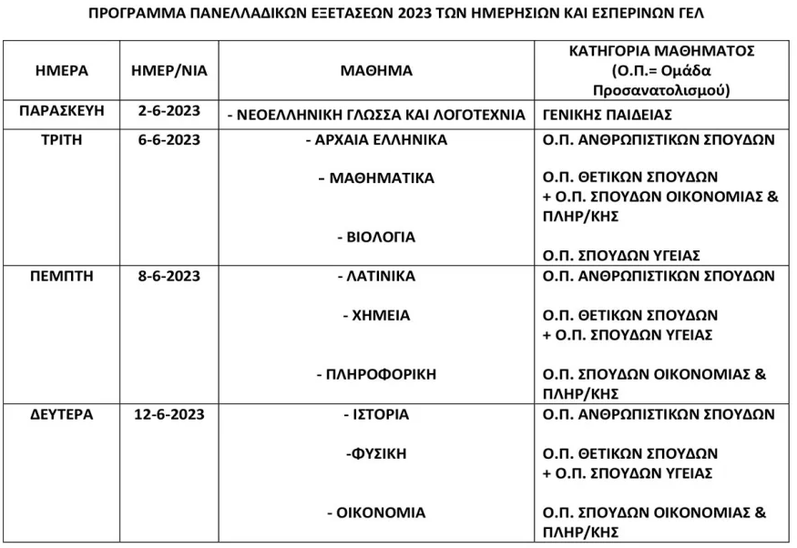 Το διάστημα 2 – 12 Ιουνίου θα εξεταστούν οι υποψήφιοι των Γενικών Λυκείων και από 1 μέχρι 16 Ιουνίου των Επαγγελματικών Λυκείων.