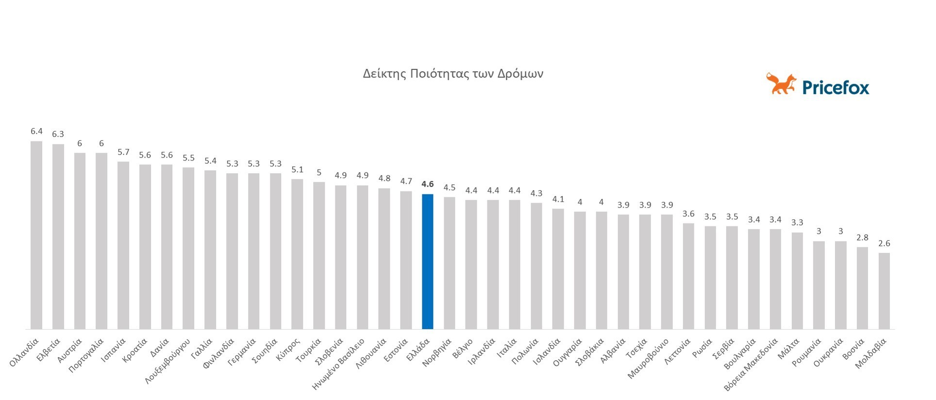 Με τον τουρισμό να ανέρχεται σε επίπεδα ρεκόρ στην Ελλάδα και την κυκλοφορία στους δρόμους να αυξάνεται συνεχώς καθώς χαλαρώνουν τα μέτρα της πανδημίας, μεγάλο ενδιαφέρον έχει η αξιολόγηση των υποδομών μεταφοράς σε σύγκριση με την υπόλοιπη Ευρώπη. Το Pricefox παρουσιάζει την κατάταξη της Ελλάδας ανάμεσα στις χώρες της Ευρωπαϊκής Ένωσης σε 4 βασικούς δείκτες υποδομών: