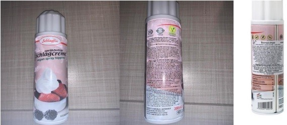 Ο Ε.Φ.Ε.Τ. και ειδικότερα η Περιφερειακή Διεύθυνση Θεσσαλίας του Ε.Φ.Ε.Τ., στο πλαίσιο διερεύνησης καταγγελίας σχετικά με το προϊόν Σαντιγί σπρέι vegan «Schlagcreme vegan spray topping», με ημερομηνία ελάχιστης διατηρησιμότητας 25/08/2024, διαπίστωσε ότι στην επικολλημένη ελληνική επισήμανση αναγράφεται η ένδειξη, «χωρίς λακτόζη, χωρίς γλουτένη, χωρίς σόγια, προϊόν : Leha GmbH Γερμανία, Εισαγωγή: ΒΙΟΫΓΕΙΑ ΕΠΕ, Αργυρουπόλεως 6, Άγιος Στέφανος», ενώ στην αγγλική αρχική επισήμανση η οποία βρίσκεται κάτω από την επικολλημένη ετικέτα αναγράφεται ότι μπορεί να περιέχει ίχνη γάλακτος (may contain traces of milk).