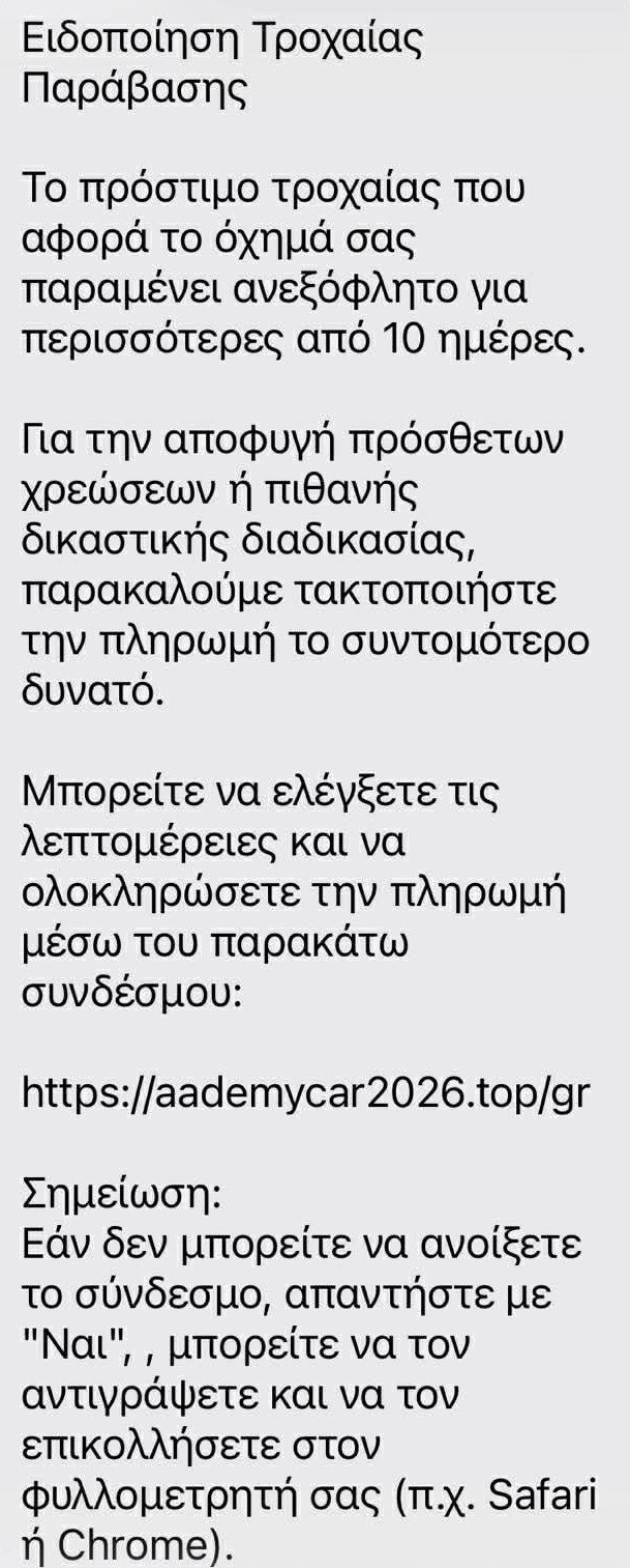 Αυξάνονται οι επιτήδειοι που προσπαθούν να αποσπάσουν χρήματα από πολίτες μέσω απατηλών μηνυμάτων SMS, εκμεταλλευόμενοι την ανησυχία και την απροσεξία τους. Αυτή τη φορά, δεκάδες πολίτες έλαβαν μηνύματα που φαινόταν να προέρχονται από την Τροχαία, προσποιούμενοι ότι αφορούσαν τροχαία παραβάσεις οι οποίες έπρεπε να πληρωθούν άμεσα.