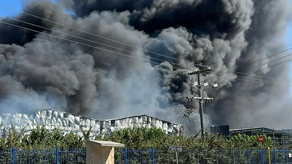 Οι πυκνοί μαύροι καπνοί έχουν καλύψει την ευρύτερη περιοχή καθώς καίγονται διάφορα υλικά που υπάρχουν στον περιβάλλοντα χώρο ενός εργοστασίου ανακύκλωσης απέναντι από το εργοστάσιο Παπουτσάνης.