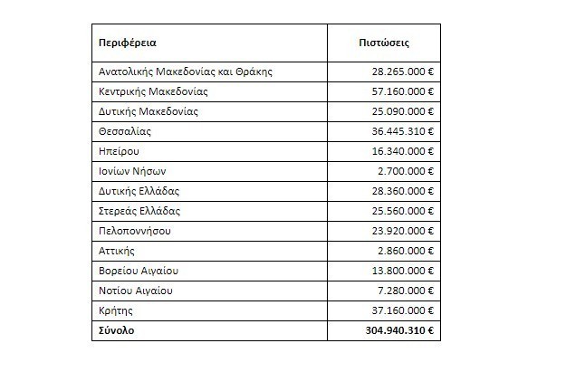 Ο νέος προϋπολογισμός της δράσης ανά Περιφέρεια διαμορφώνεται ως εξής: