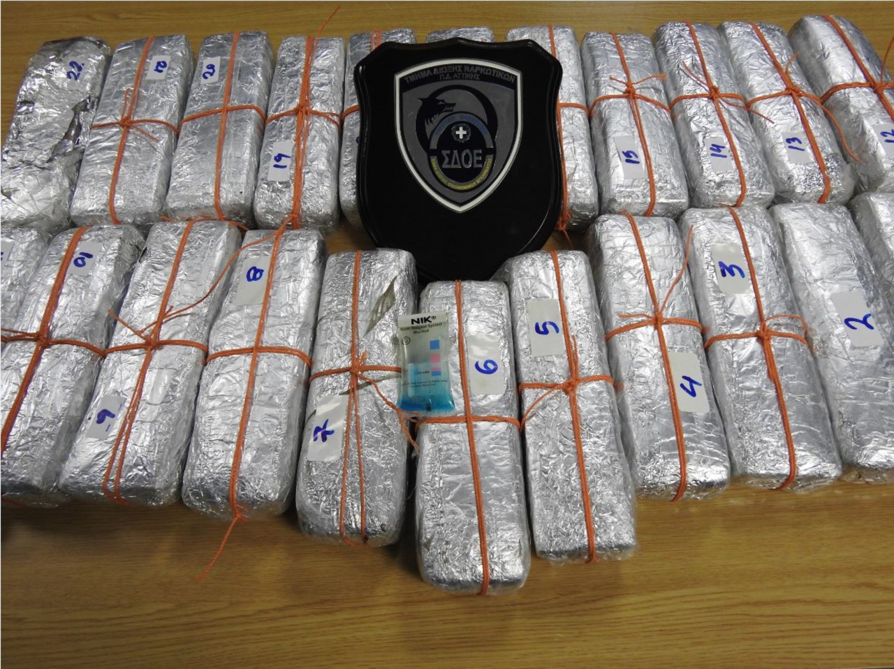 Οι ελεγκτές του Τμήματος Δίωξης Ναρκωτικών της Επιχειρησιακής Διεύθυνσης Σ.Δ.Ο.Ε. Αττικής κατέσχεσαν την Τετάρτη εχίκοσι δύο (22) ανισοβαρείς συσκευασίες με ποσότητα κοκαΐνης, συνολικού βάρους 13 κιλών και 75 γραμμαρίων, που εντοπίστηκαν σε ειδική κρύπτη εντός εμπορευματοκιβωτίου, στο λιμάνι του Πειραιά, προερχόμενου από τον Ισημερινό, έμφορτου με μπανάνες, στο πλαίσιο διϋπηρεσιακής συνεργασίας με το Τμήμα Δίωξης Λαθρεμπορίου του Γ΄ Τελωνείου Πειραιά.