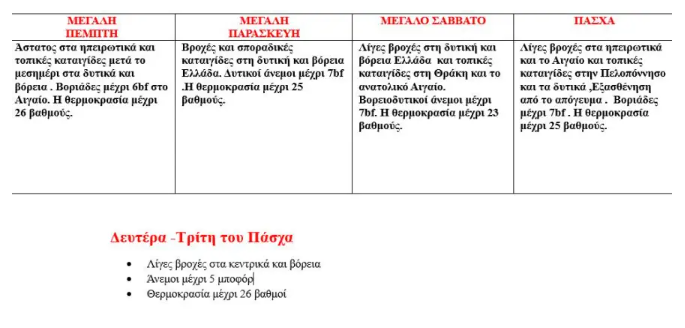 ΠΡΟΓΝΩΣΗ ΓΙΑ ΤΟ ΜΕΓΑΛΟ ΣΑΒΒΑΤΟ 04-05-2024