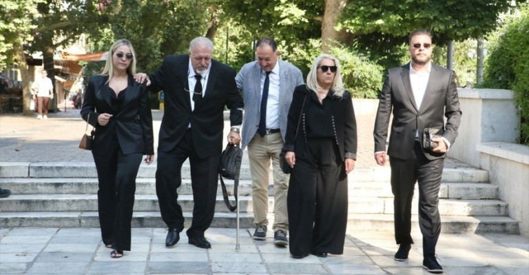 Η οικογένεια του Πετρολούκα Χαλκιά έδωσε το «παρών» στην εκκλησία για να τιμήσει τον δεξιοτέχνη του κλαρίνου, ανάμεσά τους και ο γιος του Γιάννης, ο οποίος βρέθηκε με πατερίτσα στον χώρο και η κόρη του, Ολυμπία.