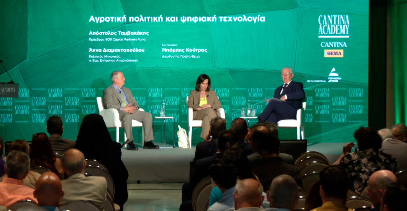 Ολοκληρώθηκε το 2ο πάνελ με θέμα «Αγροτική πολιτική και ψηφιακή τεχνολογία». Στο πάνελ συμμετείχαν οι Απόστολος Ταμβακάκης, πρόεδρος του EOS Capital Partners Fund και η πρώην υπουργός και πρώην επίτροπος της ΕΕ Άννα Διαμαντοπούλου. Συντόνισε ο διευθυντής του Πρώτου Θέματος Μπάμπης Κούτρας.