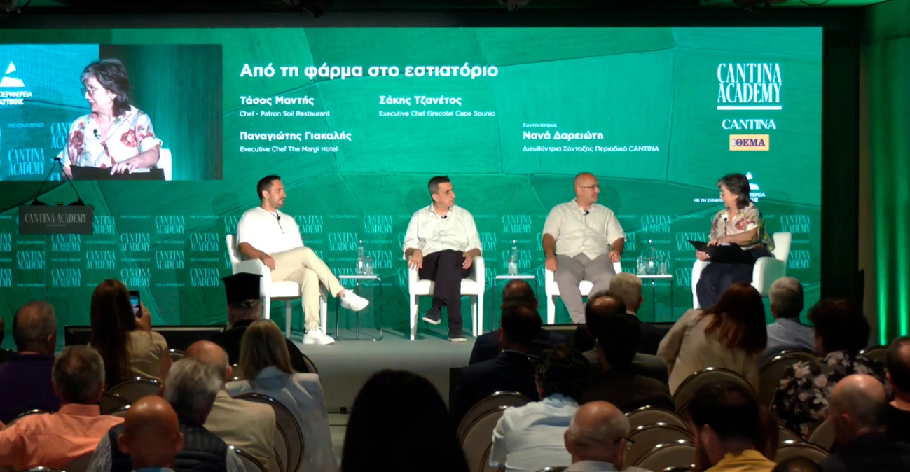 Από το βήμα του 2ου Cantina Academy, τρεις κορυφαίοι σεφ μοιράστηκαν σκέψεις και εμπειρίες γύρω από την τοπική παραγωγή, τη βιωσιμότητα και τη νέα αντίληψη στην ελληνική γαστρονομία.