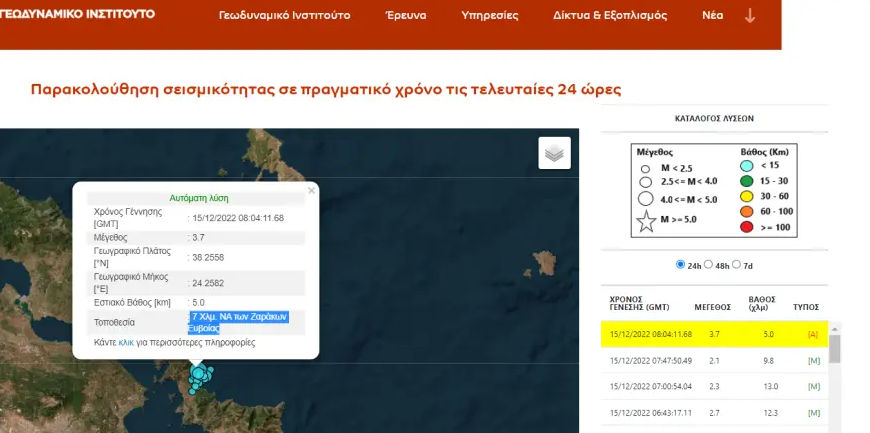Σεισμός 3,7 Ρίχτερ σημειώθηκε πριν από λίγο στην Εύβοια, στην περιοχή όπου έγινε ο χθεσινός σεισμός των 4,3 βαθμών της κλίμακας Ρίχτερ.