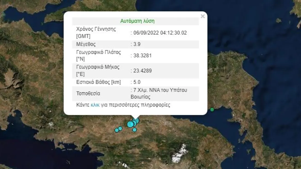 Σύμφωνα με την αυτόματη λύση του Γεωδυναμικού Ινστιτούτου ο σεισμός ήταν μεγέθους 3,9 βαθμών της Κλίμακας Ρίχτερ και είχε επίκεντρο 7χλμ. νοτιοανατολικά του Υπάτου Βοιωτίας.