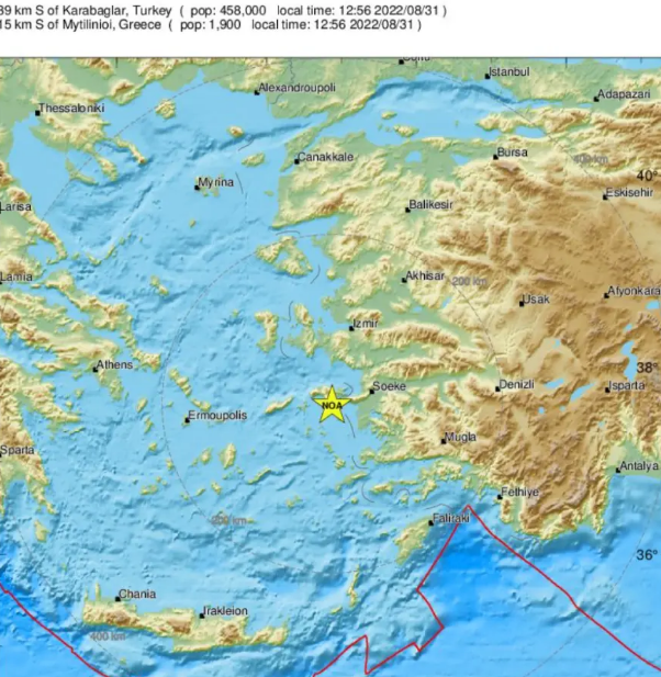 Η πρώτη σεισμική δόνηση είχε επίκεντρο 22,4 χλμ Νοτιοδυτικά της Σάμου και εστιακό βάθος 13 χλμ, σύμφωνα με το Γεωδυναμικό Ινστιτούτο του Πανεπιστημίου Αθηνών.