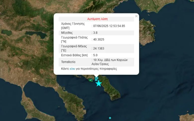 Σεισμός μεγέθους 5,3 βαθμών της Κλίμακας Ρίχτερ σημειώθηκε στο Άγιο Όρος το μεσημέρι του Σαββάτου.
