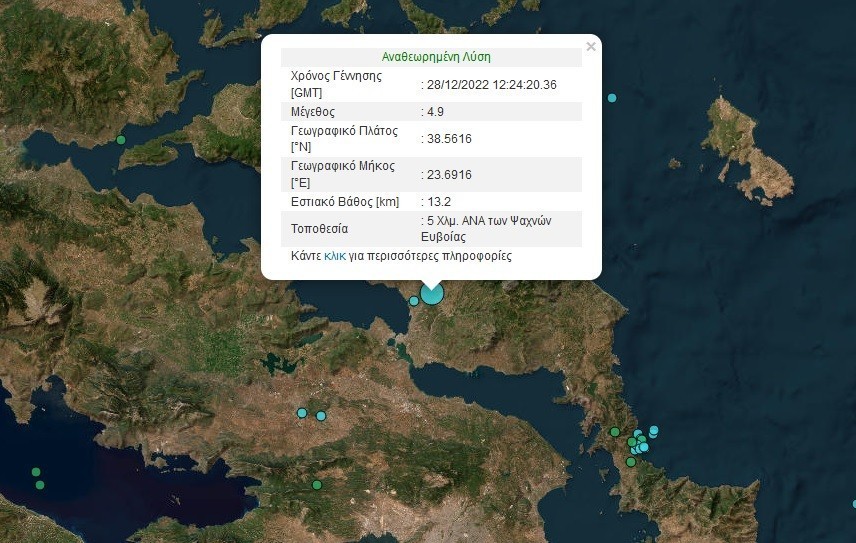 Σύμφωνα με την πρώτη εκτίμηση του Ευρωμεσογειακού Ινστιτούτου ο σεισμός ήταν 5,2 Ρίχτερ με επίκεντρο 15 χλμ. ΒΑ της Χαλκίδας.