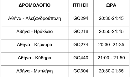 Το πρόγραμμα των πτήσεων της SKY express για τη μεταφορά του Αγίου Φωτός διαμορφώνεται ως εξής:
