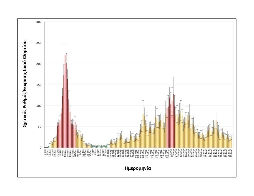Μετά από μία μικρή αποκλιμάκωση που καταγράφηκε έως τις αρχές της προηγούμενης εβδομάδας, η τάση από τις 19 Μαΐου μέχρι και την πιο πρόσφατη μέτρηση της 27ης Μαΐου, είναι σταθεροποιητική, καθώς, όπως φαίνεται στα διαγράμματα που παρουσιάζει το ΑΠΕ-ΜΠΕ, παρατηρούνται μικρές αυξομειώσεις μεταξύ των ημερών.