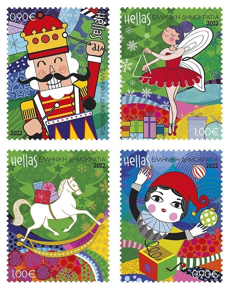 Ο Καρυοθραύστης είναι ο ήρωας του γνωστού χριστουγεννιάτικου παραμυθιού και συμβολικό στολίδι των Χριστουγέννων παγκοσμίως. Στο γνωστό χριστουγεννιάτικο παραμύθι του Καρυοθραύστη, την παραμονή των Χριστουγέννων όλα τα παιδικά παιχνίδια ζωντανεύουν και ενώνονται σε μια μάχη απέναντι στην ομάδα των ποντικιών. Με αυτή την έμπνευση, τα φετινά μας γραμματόσημα, εκτός από τον Καρυοθραύστη, απεικονίζουν αγαπημένα παιδικά παιχνίδια: η Μπαλαρίνα ψάλει τα κάλαντα με το χαρακτηριστικό χριστουγεννιάτικο τρίγωνο, ο Αρλεκίνος πετάγεται από το μουσικό κουτί κρατώντας χριστουγεννιάτικα στολίδια και το Κουνιστό Αλογάκι μεταφέρει στην πλάτη τα δώρα.