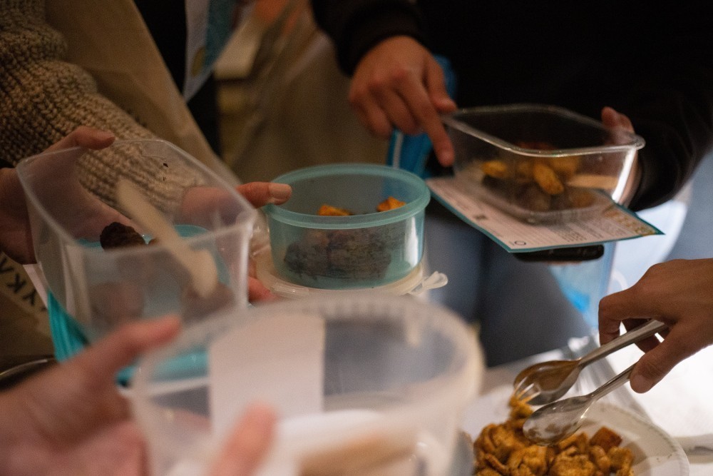 Δεκάδες άτομα, κρατώντας τα… ταπεράκια τους και έναν χάρτη που μοιράστηκε στα γραφεία του Κύκλου, στην Άνω Πόλη, ακολούθησαν τον «κυκλικό» γαστρονομικό περίπατο και επισκέφτηκαν συνολικά 7 καταστήματα εστίασης, όπου τους σέρβιραν μεζέδες, με βάση υλικά που περισσεύουν από άλλες παρασκευές και διαφορετικά θα κατέληγαν στα σκουπίδια.