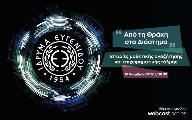 Το νέο Webcast του Ιδρύματος Ευγενίδου, θα πραγματοποιηθεί την Τετάρτη 18 Νοεμβρίου 2020, με θέμα «Από τη Θράκη στο Διάστημα: Ιστορίες μαθητικής αναζήτησης και επιχειρηματικής τόλμης».