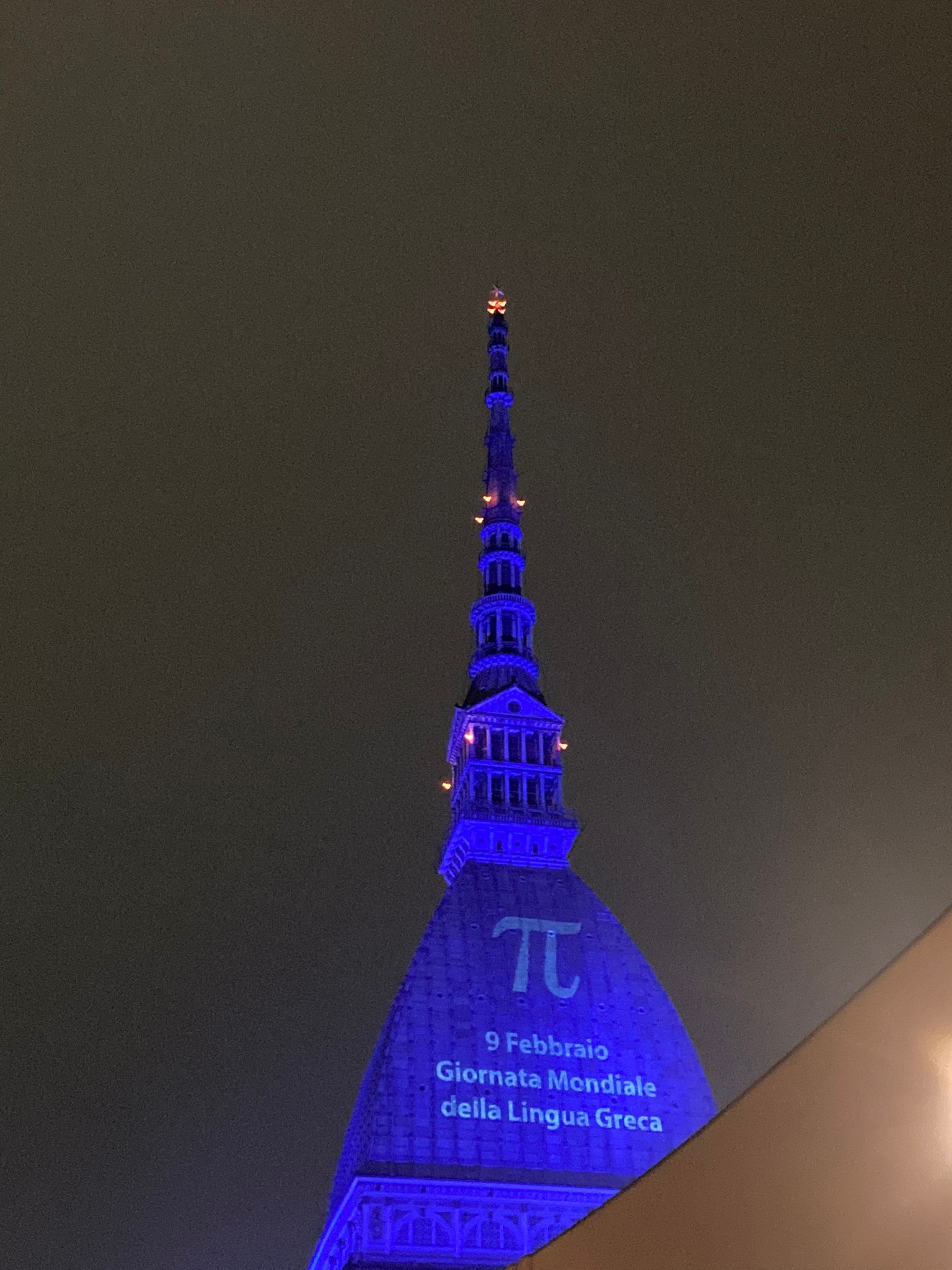Το εμβληματικό μνημείο του Τορίνου θα φωτιστεί με τα χρώματα της ελληνικής σημαίας και στην κορυφή του θα προβληθεί το ελληνικό γράμμα «π», αναδεικνύοντας την αξία αυτού του ελληνικού γράμματος στην εξέλιξη των μαθηματικών και της επιστήμης γενικότερα.