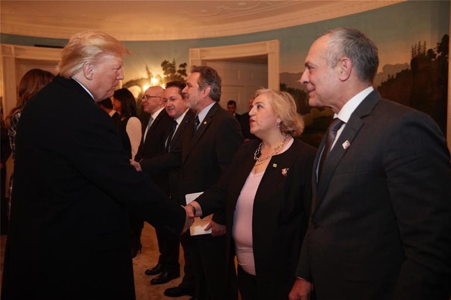 Χειραψία του προέδρου των ΗΠΑ με την κυρία Αλεξάνδρα Παπαδοπούλου κατά την πρόσφατη επίσκεψη του πρωθυπουργού και της ελληνικής αντιπροσωπείας στον Λευκό Οίκο