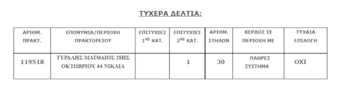 Επίσης στη δεύτερη κατηγορία βρέθηκε μία επιτυχία, η οποία κερδίζει το ποσό των 31.044,76 ευρώ.