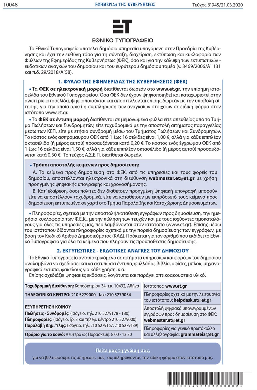 Δείτε τη δημοσίευση στο ΦΕΚ
