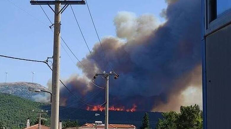 Επί τόπου επιχειρούν 50 πυροσβέστες με 20 οχήματα, δύο ομάδες πεζοπόρο, έξι ελικόπτερα και πέντε αεροσκάφη.