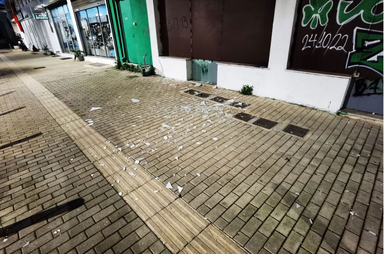 Βομβαρδισμένο τοπίο θυμίζει η πλατεία Κασταλίας στο Μαρούσι μετά την ισχυρή έκρηξη που σημειώθηκε τα ξημερώματα της Πέμπτης (12/1) σε σύνδεσμο οπαδών του Παναθηναϊκού.