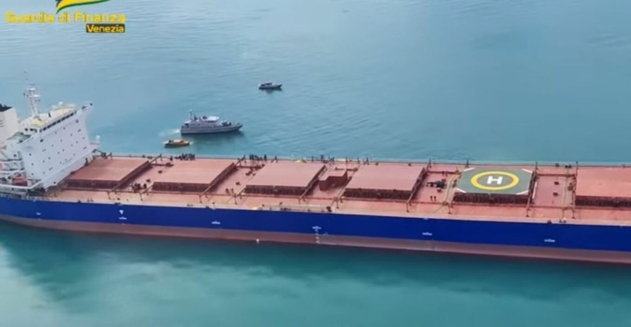 Το δημοσίευμα κάνει λόγο για πλάνα τραβηγμένα από ελικόπτερο, που δείχνουν έναν αριθμό σκαφών του λιμενικού να περιβάλλουν τον ελληνόκτητο «Atlas» 75.000 dwt (κατασκευής 2012) στη Βενετία.