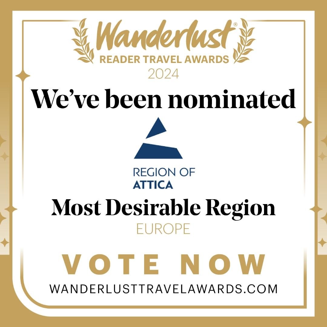 Το κορυφαίο ταξιδιωτικό περιοδικό Wanderlust διεξάγει διεθνή διαδικτυακό διαγωνισμό για την ανάδειξη των πιο δημοφιλών προορισμών στον κόσμο, συμπεριλαμβάνοντας την Αττική ανάμεσα στις υποψηφιότητες για την «πιο ελκυστική περιφέρεια της Ευρώπης».