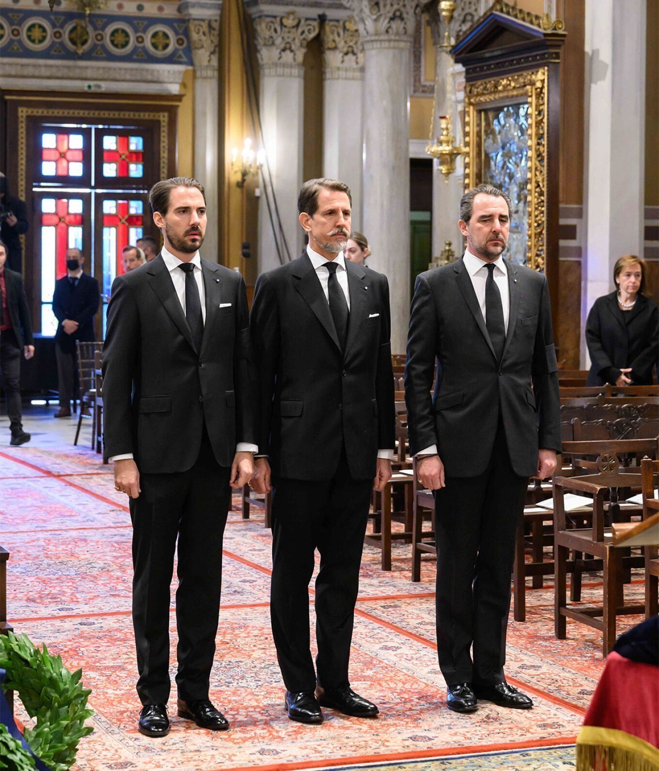 Μέσα στο παρεκκλήσι, τελέστηκε τρισάγιο, ενώ τα μέλη της οικογένεας του τέως βασιλιά, γονάτισαν στη λήξη της τελετής. Λίγο νωρίτερα, το τελευταίο «αντίο» απηύθυναν η αδερφή του, Ειρήνη, ο βασιλιάς της Ισπανίας Φελίπε και η σύζυγός του Λετίσια, ο επίτιμος βασιλιάς της Ισπανίας, Χουάν Κάρλος που έφτασε υποβασταζόμενος και οι κόρες του.