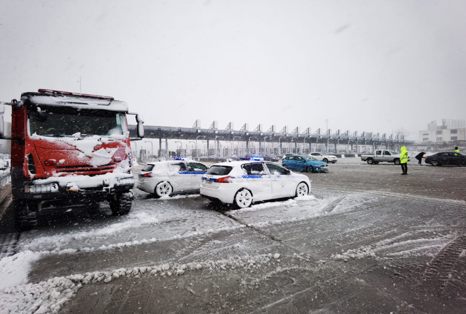 Στον Άγιο Στέφανο, τα περιπολικα σταματούν τους οδηγούς αυτοκινήτων για να βάλουν αλυσίδες ώστε να βγουν στην Αθηνών-Λαμίας.